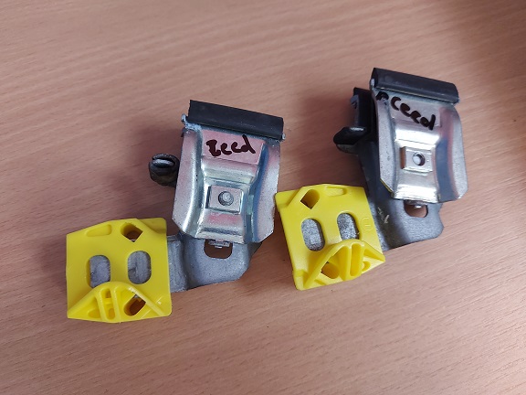 2 db alkatrész, 2 db műanyag csúszka (új), és 2 db fém csúszka ( bontott)